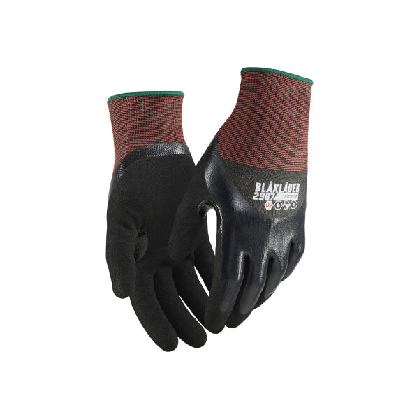 · De nitrilcoating rond de hele handschoen maakt de handschoen vloeistofdicht en geschikt voor natte en geoliede omgevingen waar het risico op snijwonden bestaat.