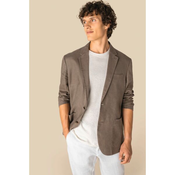 100% linnen. Geweven stof. Rechte snit, licht getailleerd dankzij plooien aan de voorkant en twee zijpanelen. Ongestructureerd jasje. Gewassen look. Sluiting met twee knopen met hoornlook aan de voorkant. Twee opgestikte paspelzakken aan de voorkant en een borstzak met paspel aan de hartzijde. Mouwboorden met sieroverslag en decoratieve knopen met hoornlook. Reverskraag met ton-sur-ton sierknoopsgat op de hartzijde. Binnenlus om op te hangen. Middennaad op de rug. Twee zijsplitten aan de achterkant voor meer bewegingsvrijheid. Twee binnenzakken met paspel op de borst. Verzorgde binnenafwerking: voorpand met beleg en afgebiesde naden. Mouwen gevoerd. Het kledingstuk is na het confectioneren gewassen: de kleuren kunnen per stuk licht variëren.