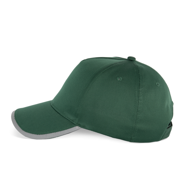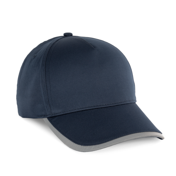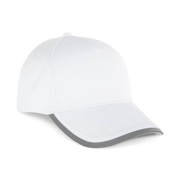 100% polyester. Pet met 5 panelen van interlockpolyester. Contrasterende band op de zonneklep. Materiaal voldoet aan de EN13758-1 norm. Verstelbare klittenbandsluiting aan de achterkant.