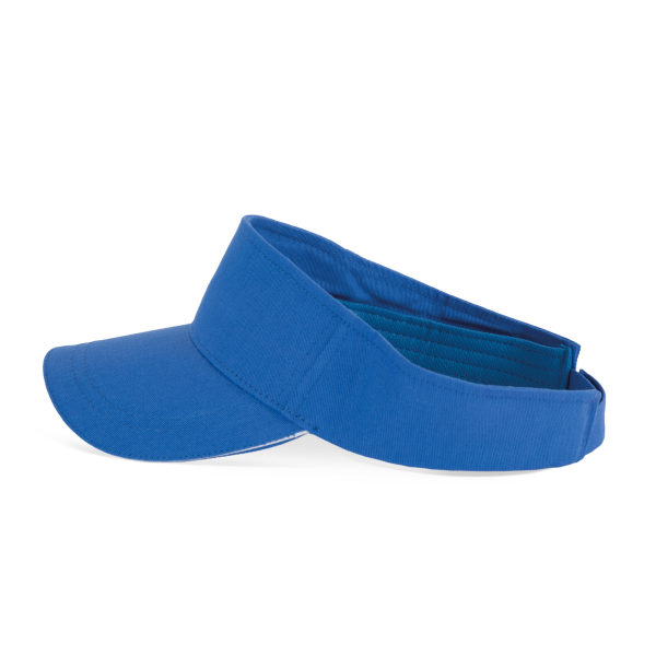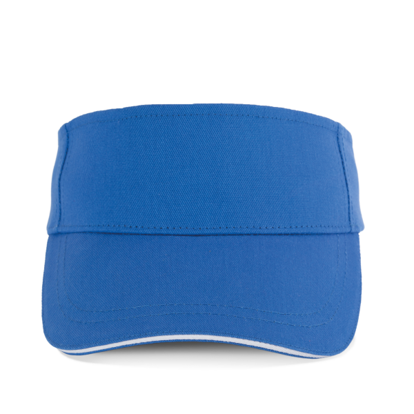 100% katoen. Sportieve zonneklep met contrasterende sandwich. Nektape in ademend polyester. Verstelbare klittenbandsluiting.